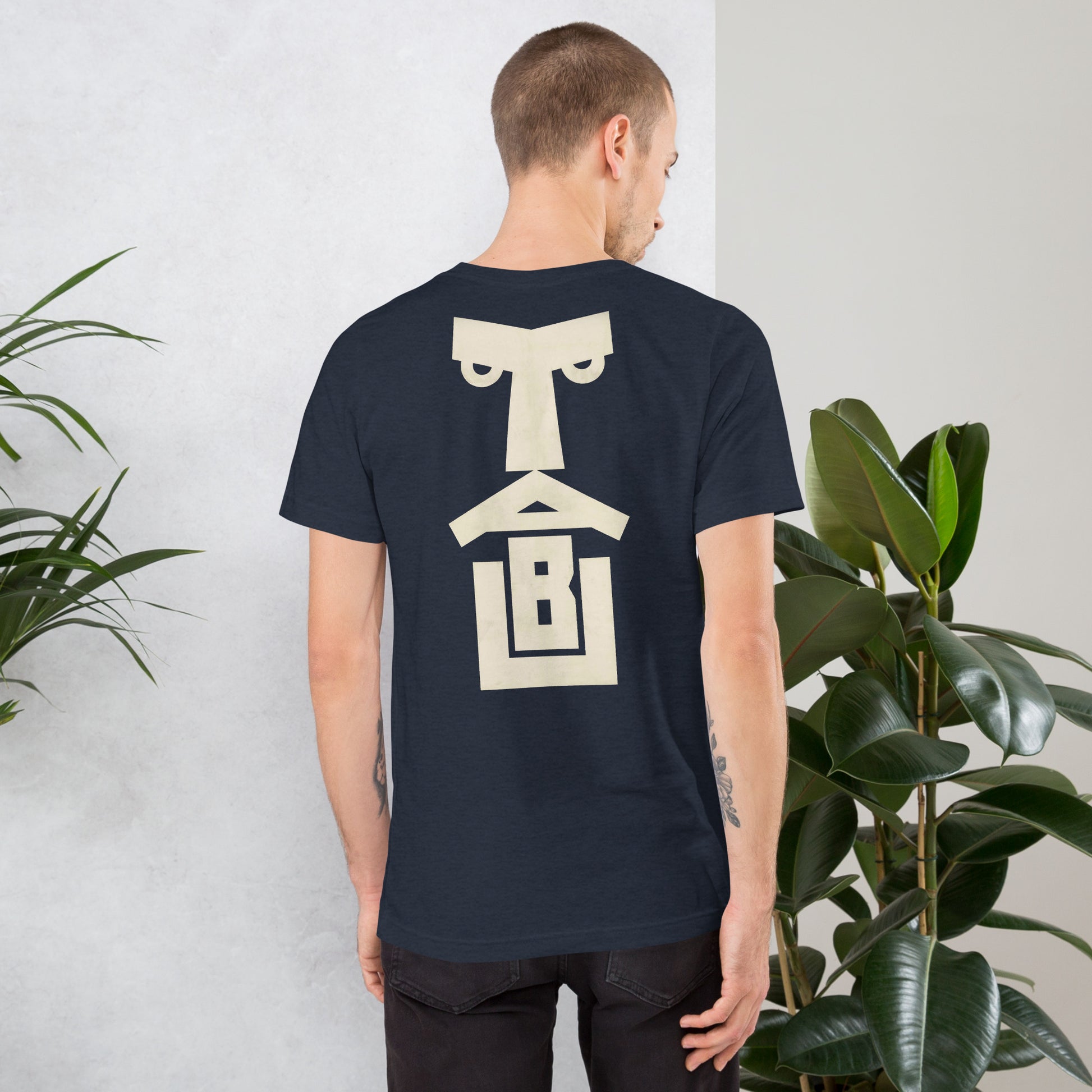 Bold Geometric Face Back-Print T-Shirt – Minimalist Modern Graphic Tee