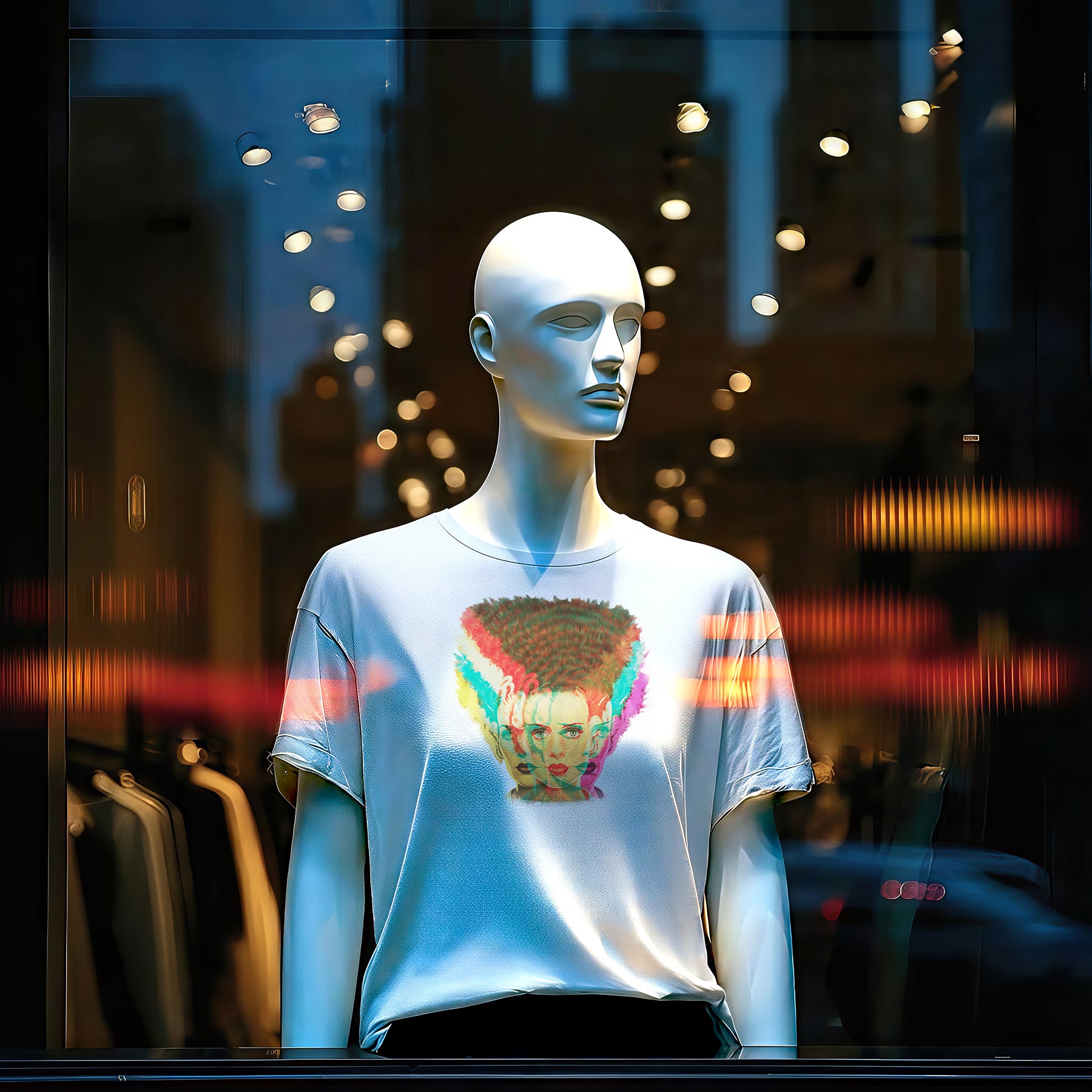 Channel the haunting beauty and electric energy of classic cinema with this Bride of Frankenstein T-shirt, featuring a vivid multi-layered design inspired by the timeless Universal monster. The striking artwork fuses vintage horror with modern pop-art style — a kaleidoscope of color and attitude that reimagines one of film’s most iconic figures.