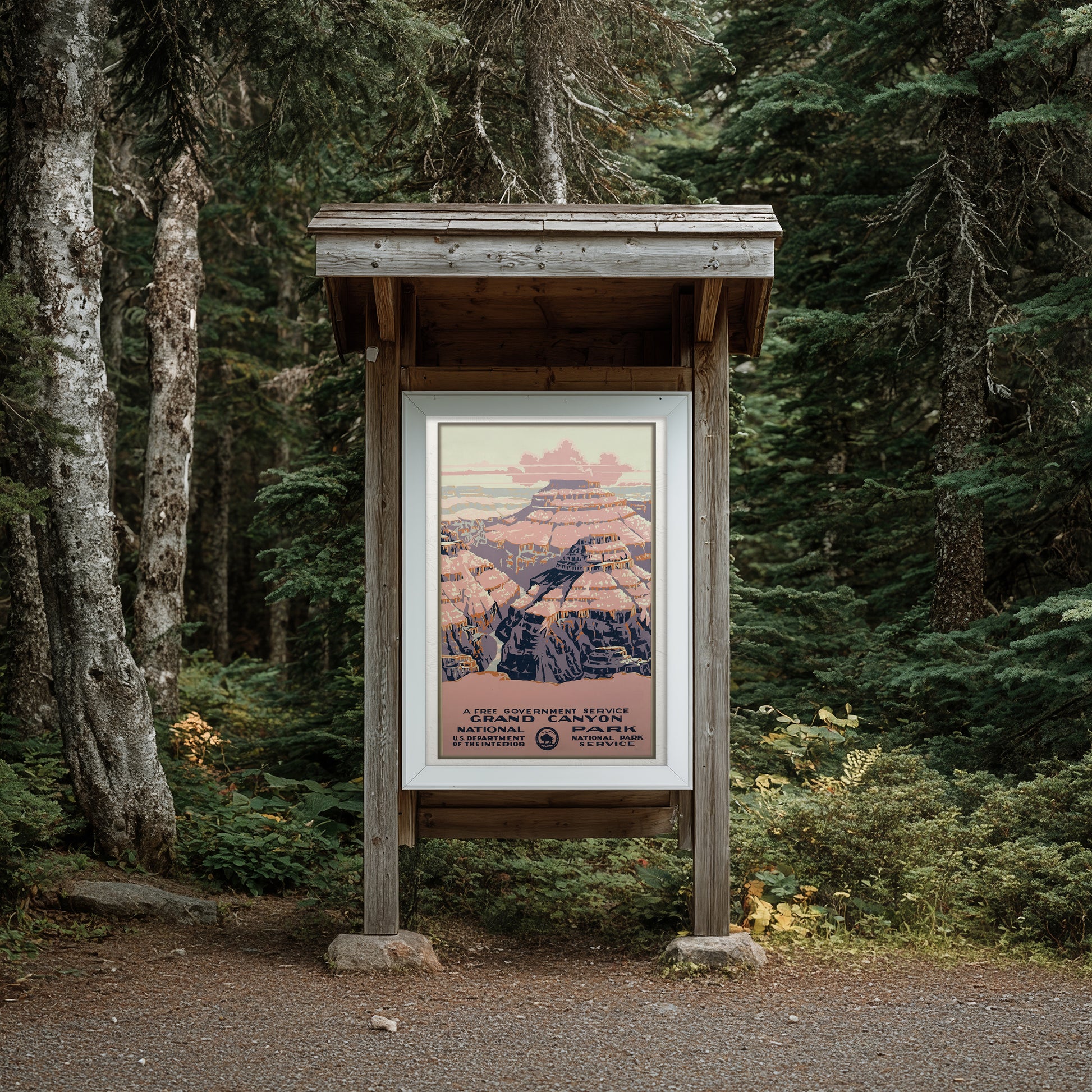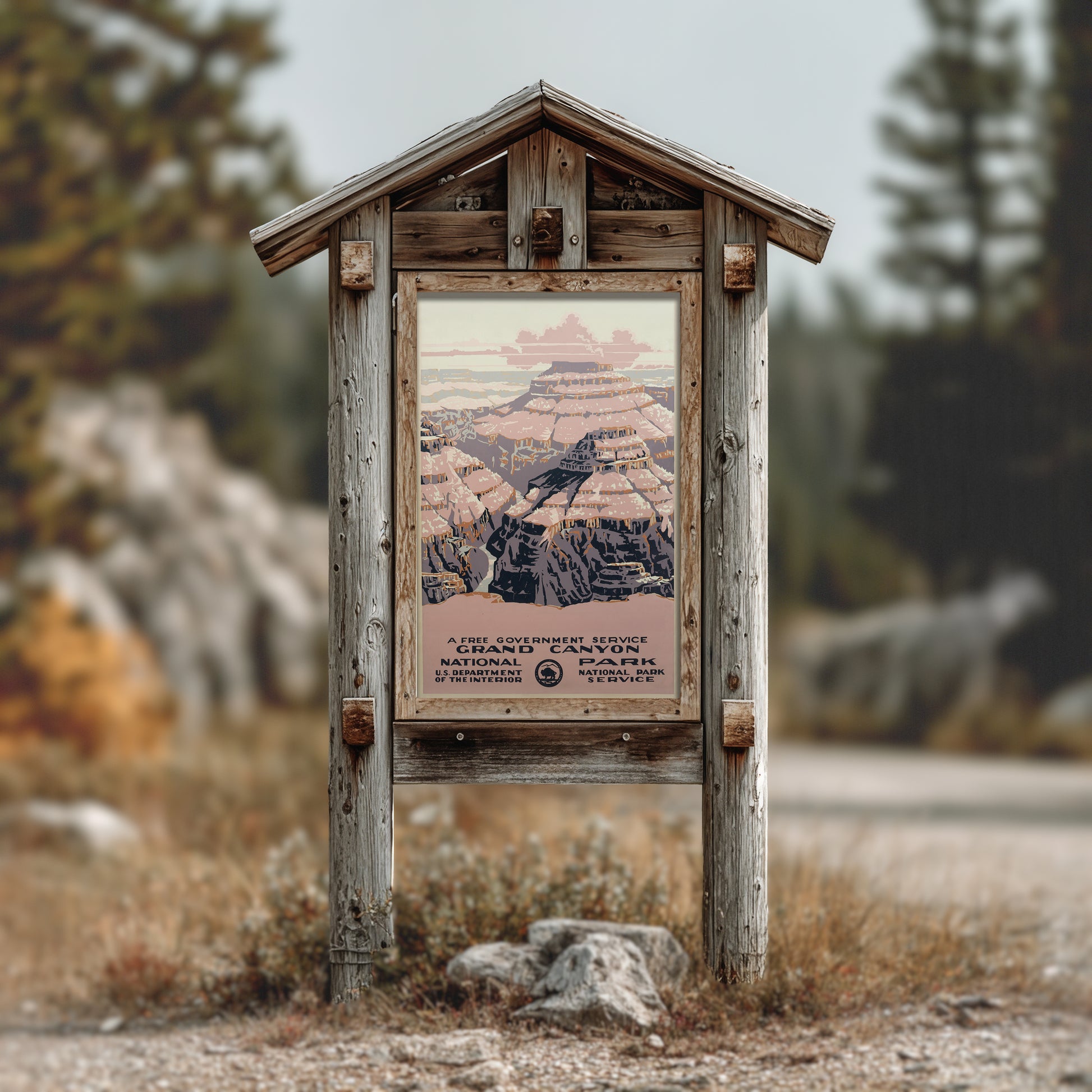 Bring the timeless beauty of America’s iconic landscapes into your home with this vintage Grand Canyon WPA poster—a restored reproduction of the classic National Park Service artwork created in the 1930s.