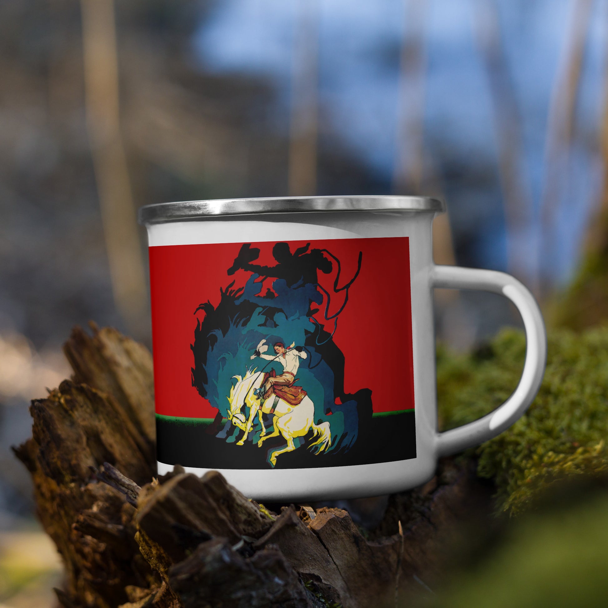 Made from lightweight, durable enamel, this mug is perfect for campfires, road trips, or everyday coffee at home. A great gift for rodeo fans, Western art lovers, and anyone drawn to classic Americana design.