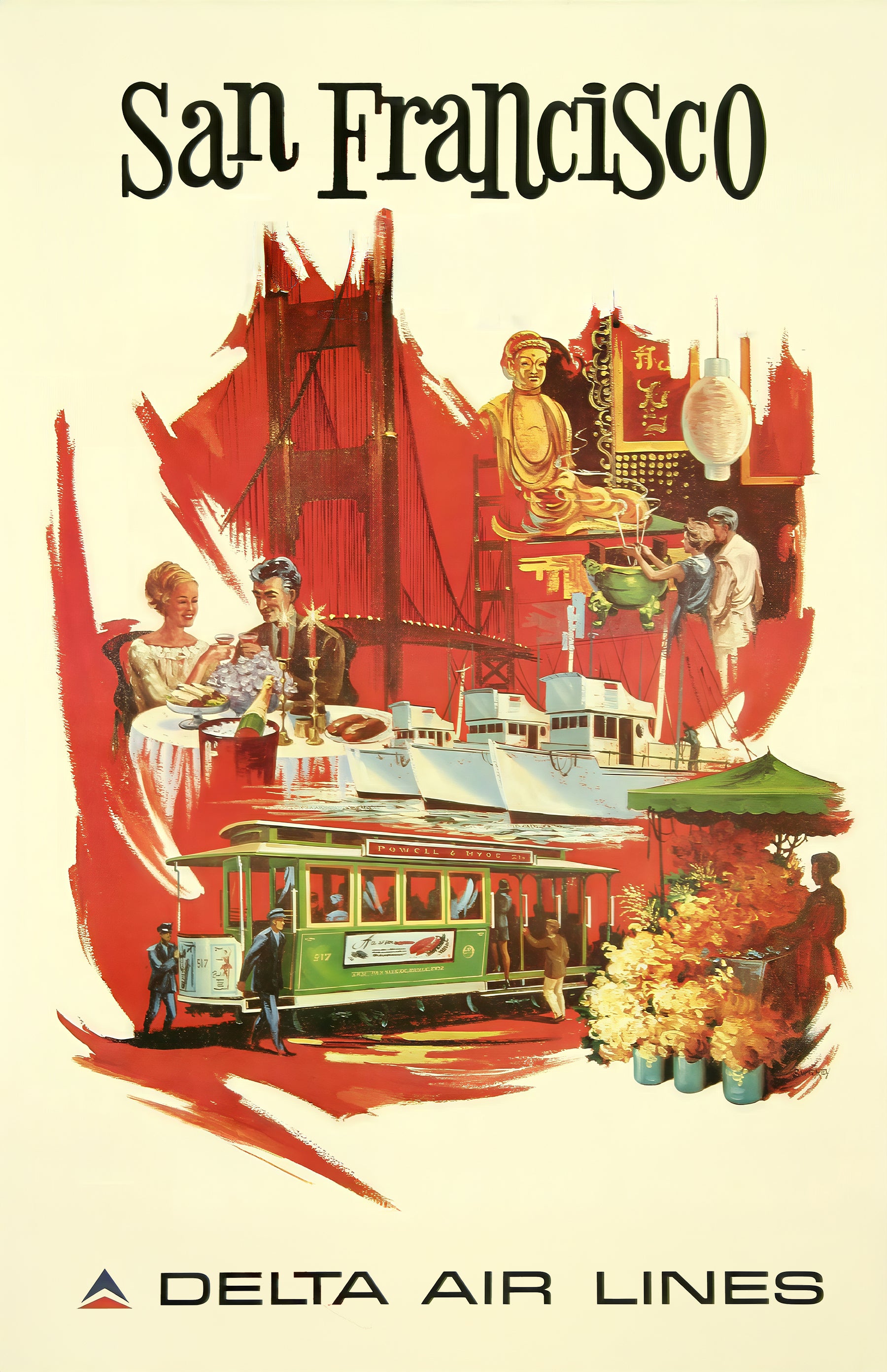 San Francisco Delta Air Lines Vintage Travel Poster – Retro Airline Wall Art (11×17)