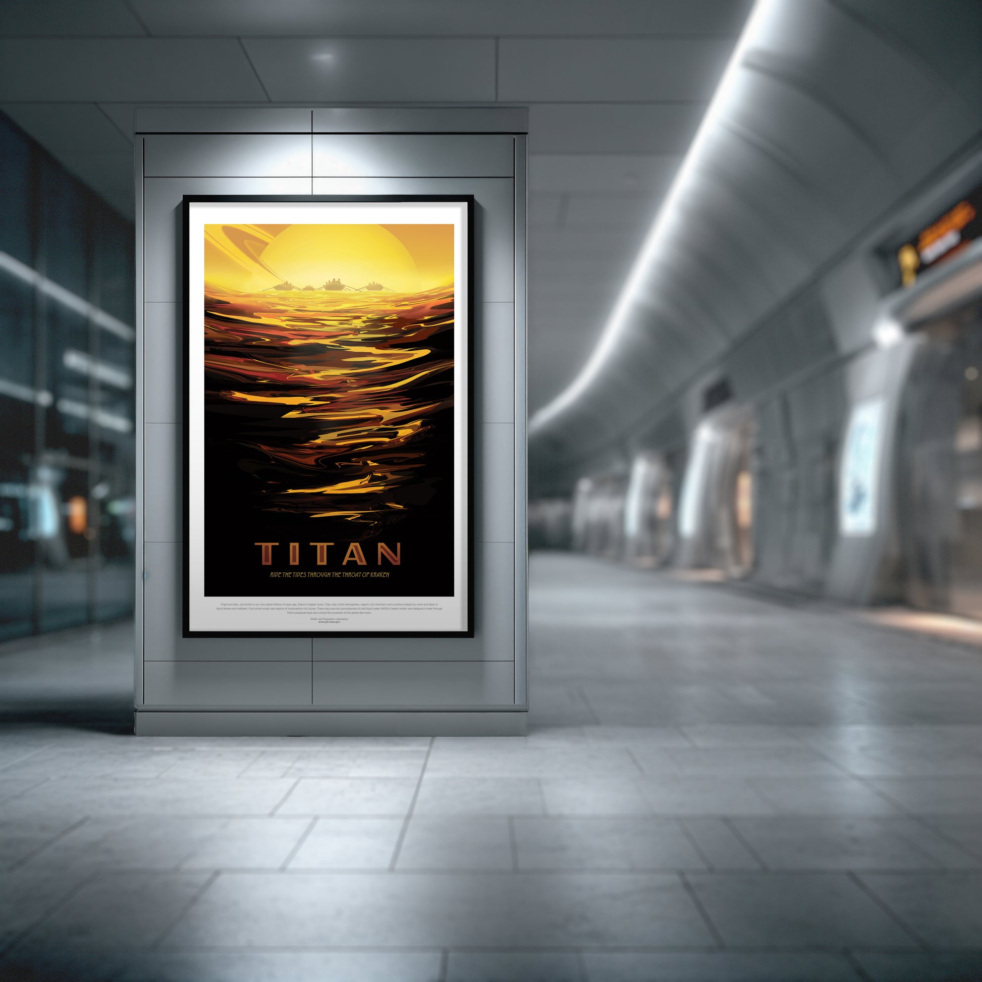 Titan NASA Travel Poster • Saturn Moon Exploration Art • Retro Space Tourism Print