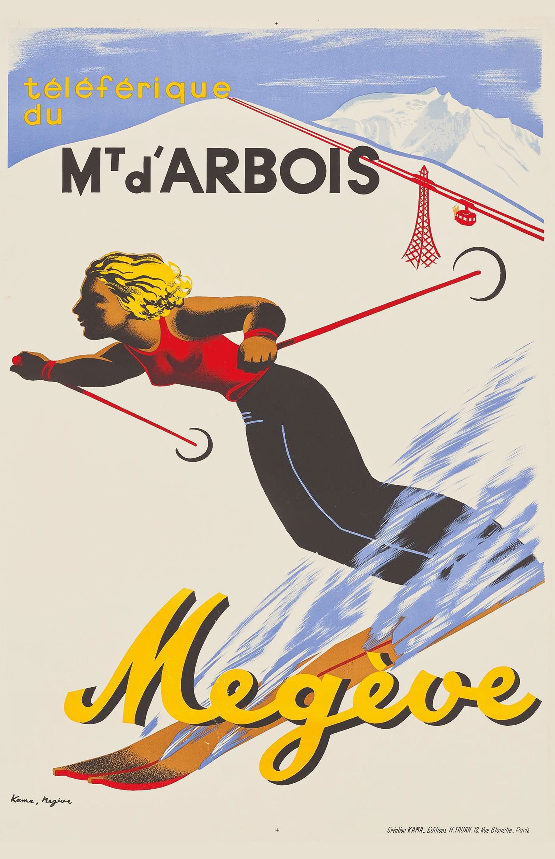 Vintage Megève Ski Poster – Mt. d’Arbois Téléphérique